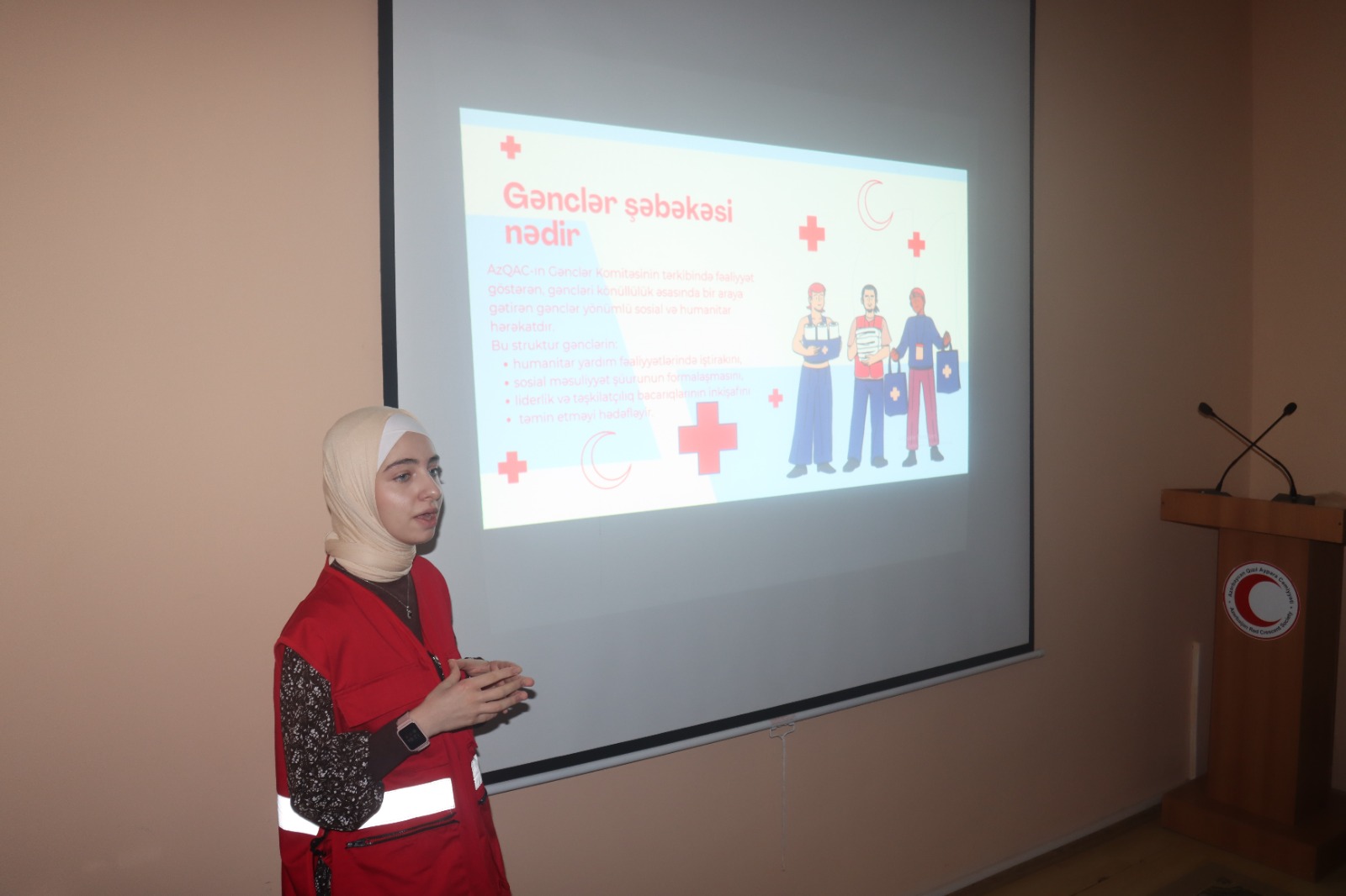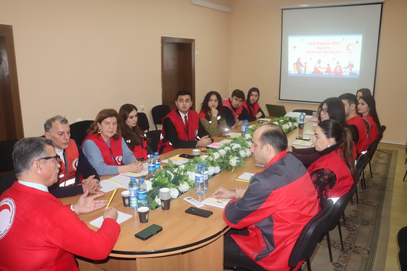 Tədbirdə giriş sözü ilə çıxış edən Azərbaycan Qızıl Aypara Cəmiyyətinin Prezidenti Novruz Aslanov könüllüləri salamlayaraq, Qızıl Xaç və Qızıl Aypara Hərəkatının yaranma tarixi, əsas prinsipləri və dəyərləri barədə ətraflı məlumat vermişdir. O, könüllülüyün humanitar fəaliyyətlərdə oynadığı mühüm rolu vurğulamış, gənclərin bu sahədə fəal iştirakının vacibliyini qeyd etmiş, həmçinin, humanitar diplomatiya anlayışı, onun regional və beynəlxalq əməkdaşlıqdakı əhəmiyyəti haqqında danışmışdır.