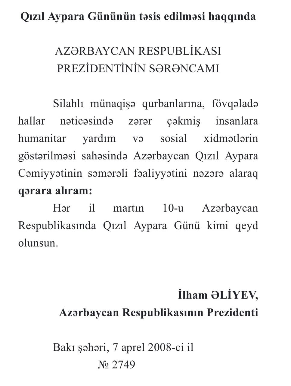 Azərbaycan Qızıl Aypara Cəmiyyətinin yaradılmasının 106-cı ildönümü