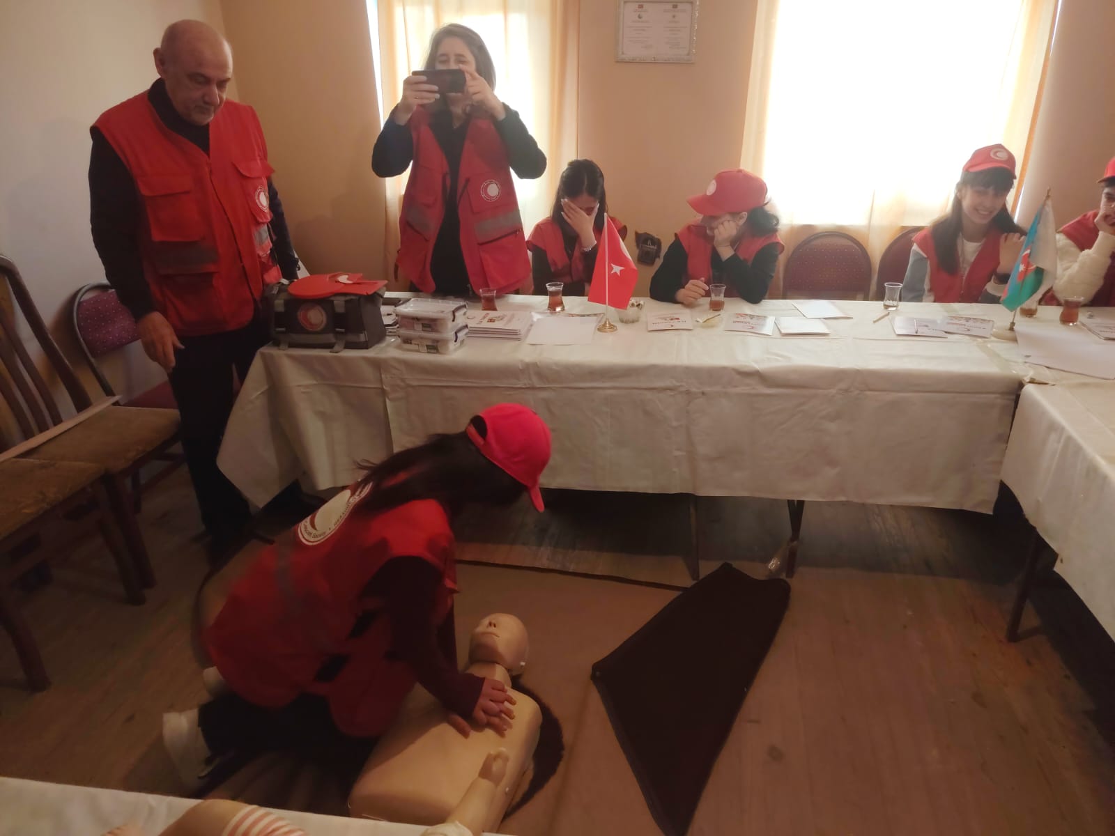 Nəzəri biliklər real vəziyyətlərə uyğunlaşdırılmış praktiki təqdimatlarla müşahidə olunmuş və xüsusi vasitələrlə nümayiş etdirilmişdir. Könüllülər və əməkdaşlar praktiki hissədə fəal iştirak etməklə, ekstremal şəraitdə vaxt itirmədən doğru qərar vermək bacarıqlarını sınaqdan keçirmişdir.
