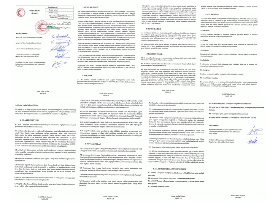 AZƏRBAYCAN QIZIL AYPARA CƏMİYYƏTİNİN KOMMUNİKASİYA SİYASƏTİ AZƏRBAYCAN QIZIL AYPARA CƏMİYYƏTİNİN SOSİAL MEDİYA SİYASƏTİ AZƏRBAYCAN QIZIL AYPARA CƏMİYYƏTİNİN ƏMƏKDAŞLARI VƏ KÖNÜLLÜLƏRİ ÜÇÜN TƏHLÜKƏSİZLİK QAYDALARIAZƏRBAYCAN QIZIL AYPARA CƏMİYYƏTİNİN KÖNÜLLÜLÜK SİYASƏTİ